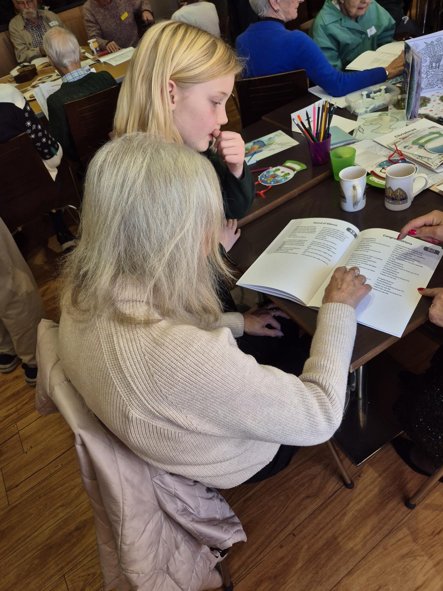 Our Faith leaders visit The Dementia Cafe the first Wednesday of every month. It is a time which both visitors to the cafe and the children thoroughly enjoy. The children talk, complete crafts and sing with members of our community who have dementia.