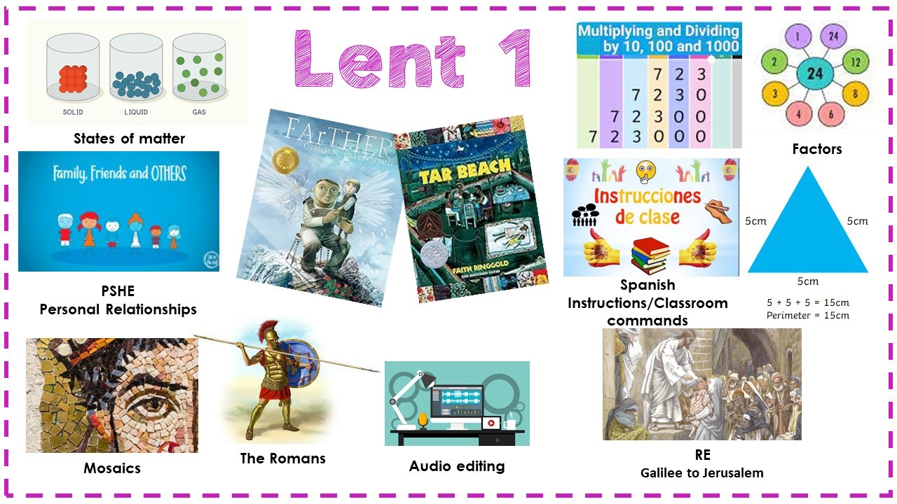 Year 4 Knowledge Organisers Year 4 Knowledge Organiser Galilee to Jerusalem v2 MATHS MULTIPLICATION DIVISION KNOWLEDGE ORGANISER v2 SCIENCE STATES OF MATTER KNOWLEDGE ORGANISER v2 History Knowledge Organiser v5 ART ROMAN MOSAIC KNOWLEDGE ORGANISER v2 COMPUTING AUDIO EDITING KNOWLEDGE ORGANISER v2 SPANISH VOCABULARY v6 Year 4 Curriculum Year 4 Curriculum Overview 2025 26 Year 4 Objectives KIRFs Year 4 Autumn 1 KIRFs Year4 Autumn2 Every Piece, Every Time - Year 4 Non Negotiables Year 4 SPAG Glossary Year 4 Spellings List Year 4 Recommended Reads LKS2 Curriculum Meeting