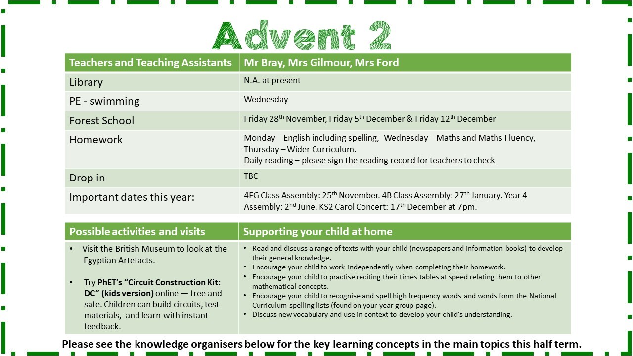 Year 4 Knowledge Organisers Year 4 Knowledge Organiser Prophecy and Promise Year 4 Multiplication and Division Maths Knowledge Organiser Area Knowledge Organiser v3 Knowledge organiser Y4 Science Electricity The Ancient Egyptians knowledge organiser v3 Spanish Vocabulary v5 Knowledge Organiser Blackbird Year 4 Unit 5 1 Y4 Programming Repetition in Shapes Knowledge Organiser Year 4 Curriculum Year 4 Curriculum Overview 2025 26 Year 4 Objectives KIRFs Year 4 Autumn 1 KIRFs Year4 Autumn2 Every Piece, Every Time - Year 4 Non Negotiables Year 4 SPAG Glossary Year 4 Spellings List Year 4 Recommended Reads LKS2 Curriculum Meeting